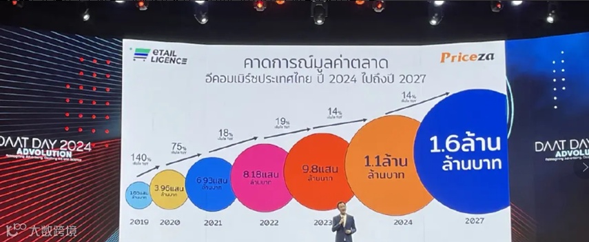 预计到2027年,整个电商市场规模还将继续上涨至1.6 万亿泰铢(约合496亿美元),复合年增长率达到14%。