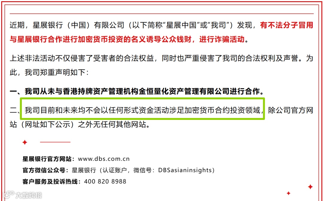 加米$友好:星展是第一家支持加密货币交易的银行,在新加坡甚至是唯一一家。