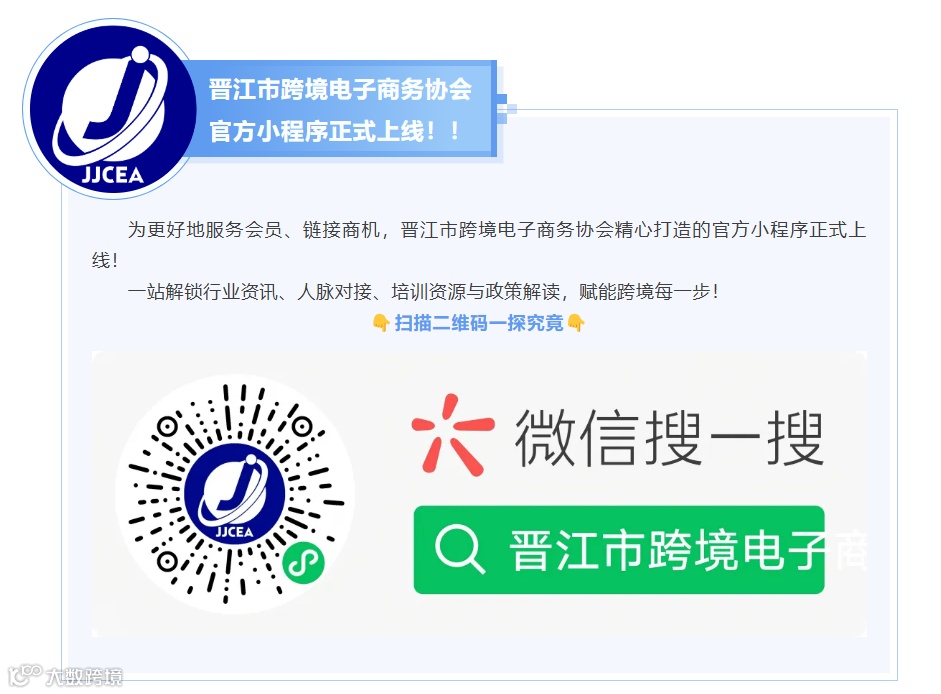 更多协会资讯,敬请关注晋江市跨境电子商务协会👇👇👇