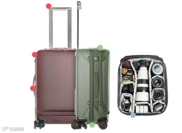 - 符合登机尺寸标准(55.37×35.56×22.86cm),整箱重3.99kg;提供黑、酒红、灰绿三色可选。