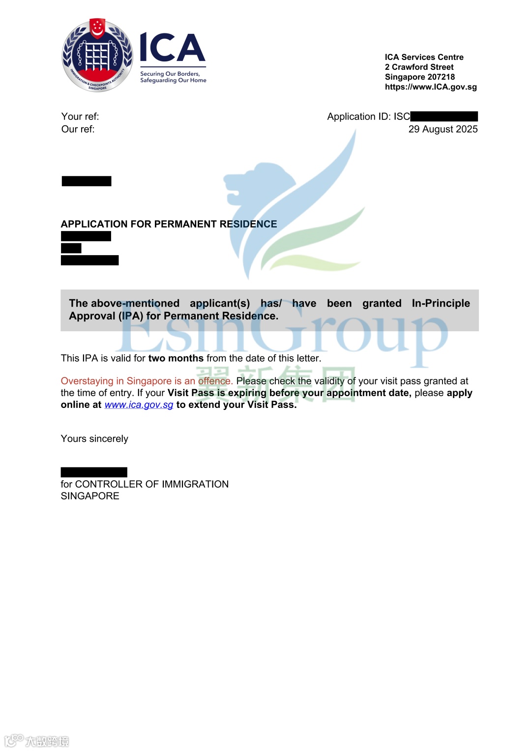 2025年8月,新加坡移民与关卡局(ICA)正式批准L先生及其家人PR申请。