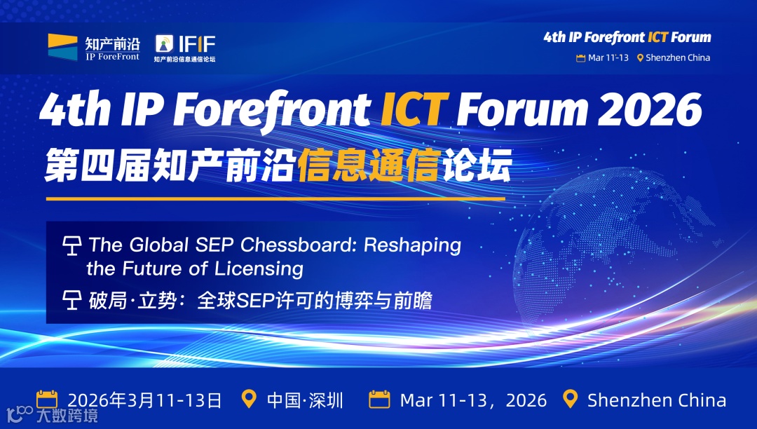 “第四届知产前沿信息通信论坛”(IFIF 2026)将于2026年3月11日至13日在深圳举行。作为亚太地区最具影响力的标准必要专利(SEP)专业盛会之一,本届论坛聚焦全球SEP格局重塑与生态演进,深入探讨产业前沿议题。