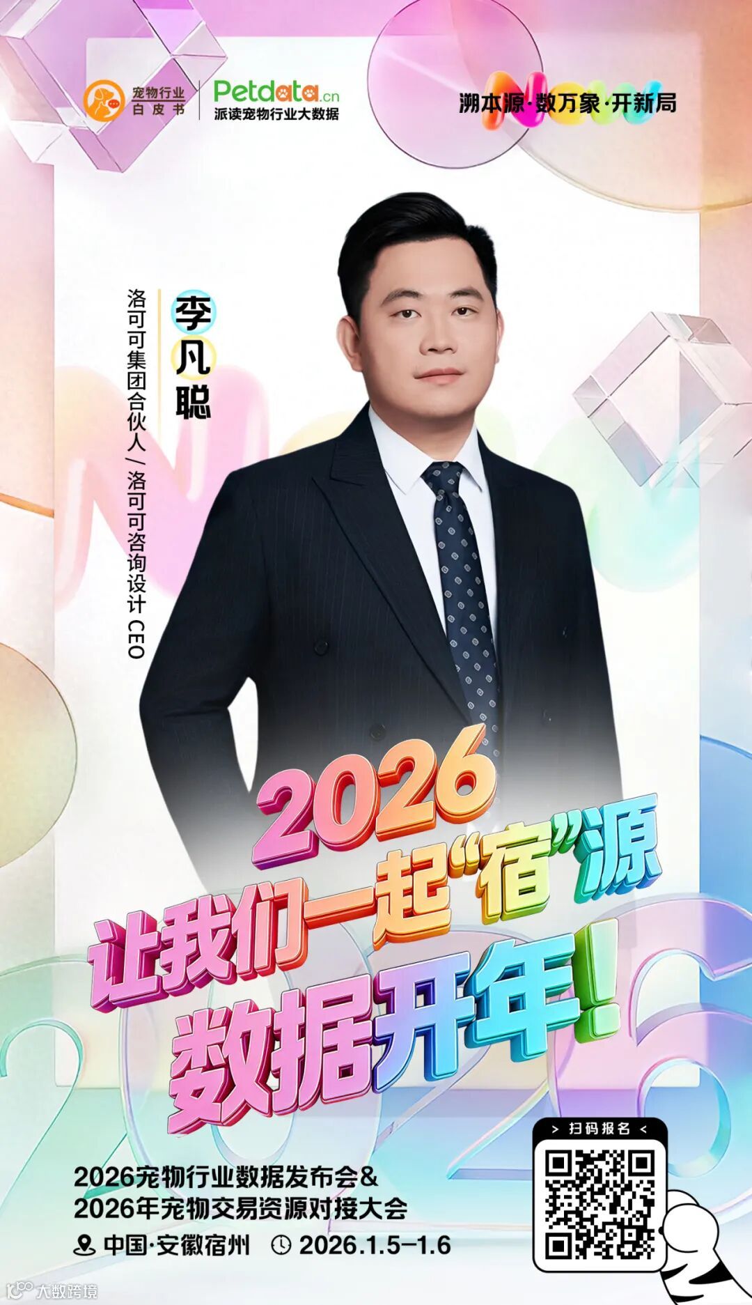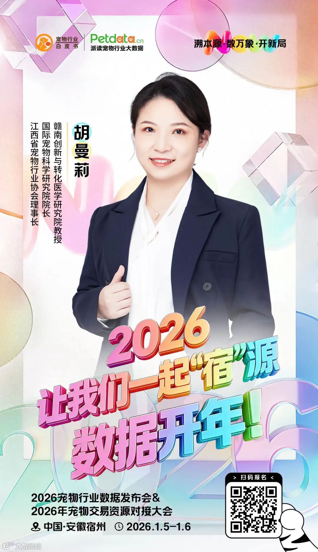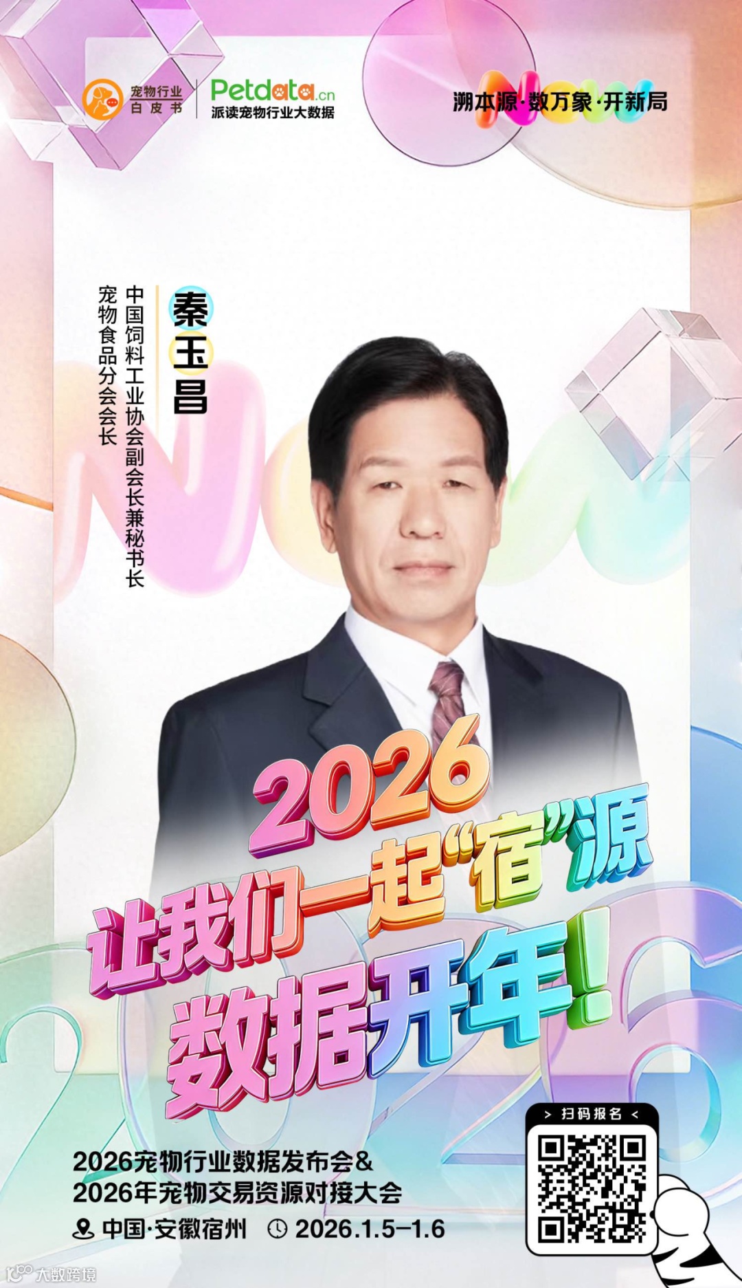 由宠物行业白皮书,派读宠物行业大数据平台主办、福建贝创投资发展集团有限公司,安徽恩宠有加宠物用品有限公司联合主办、安徽省宠物行业协会,华南农业大学动物科学学院,赣南创新与转化医学研究院,宿州市宠物经济商会协办、北京派读科技有限公司,宿州市广播电视台承办的2026年中国宠物行业数据发布会将于2026年1月5日-6日在宿州丰大国际酒店隆重举行。今天,白皮书团队将为大家介绍本次大会的重量级参会嘉宾以及他们带来的分享内容。