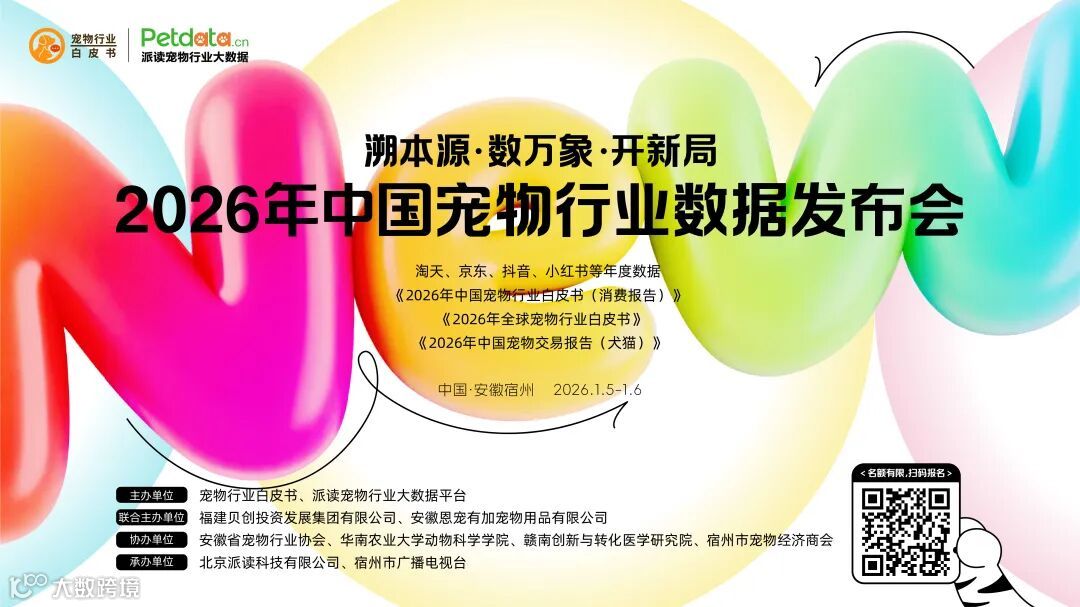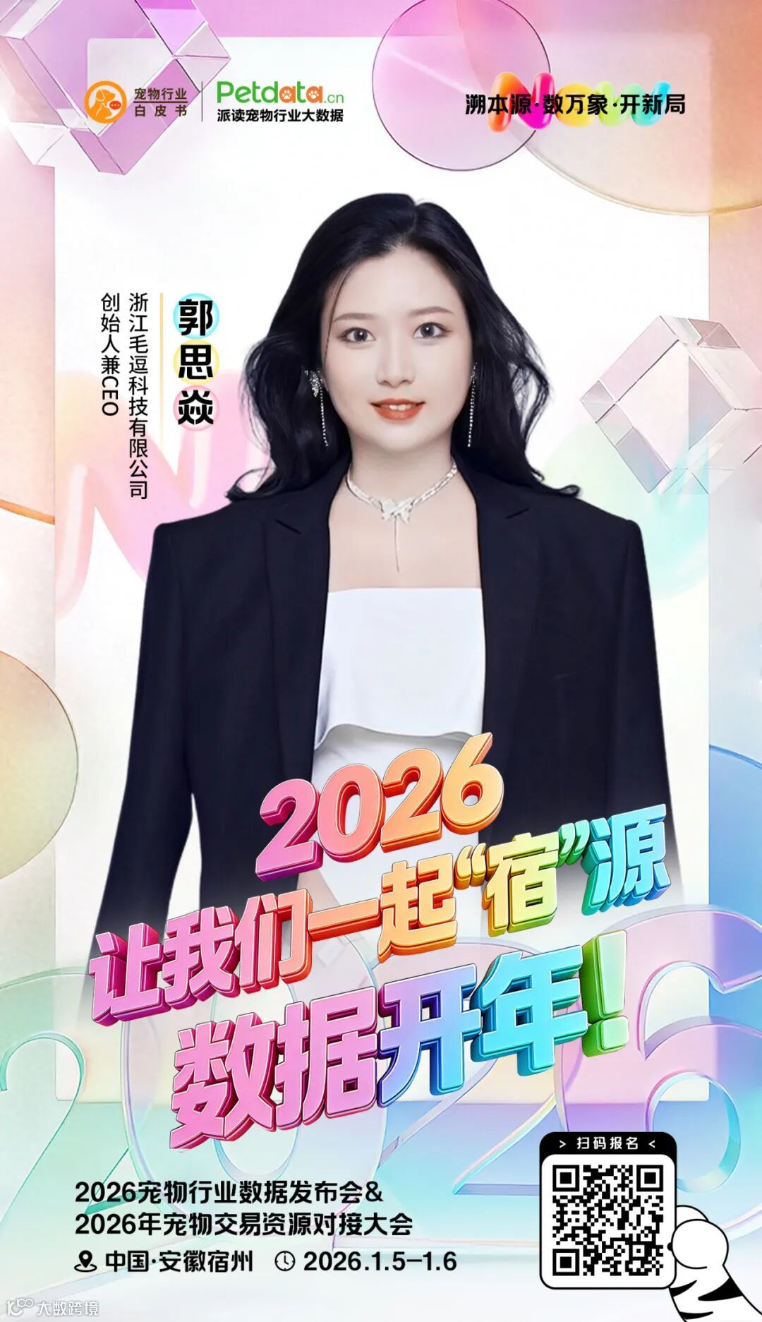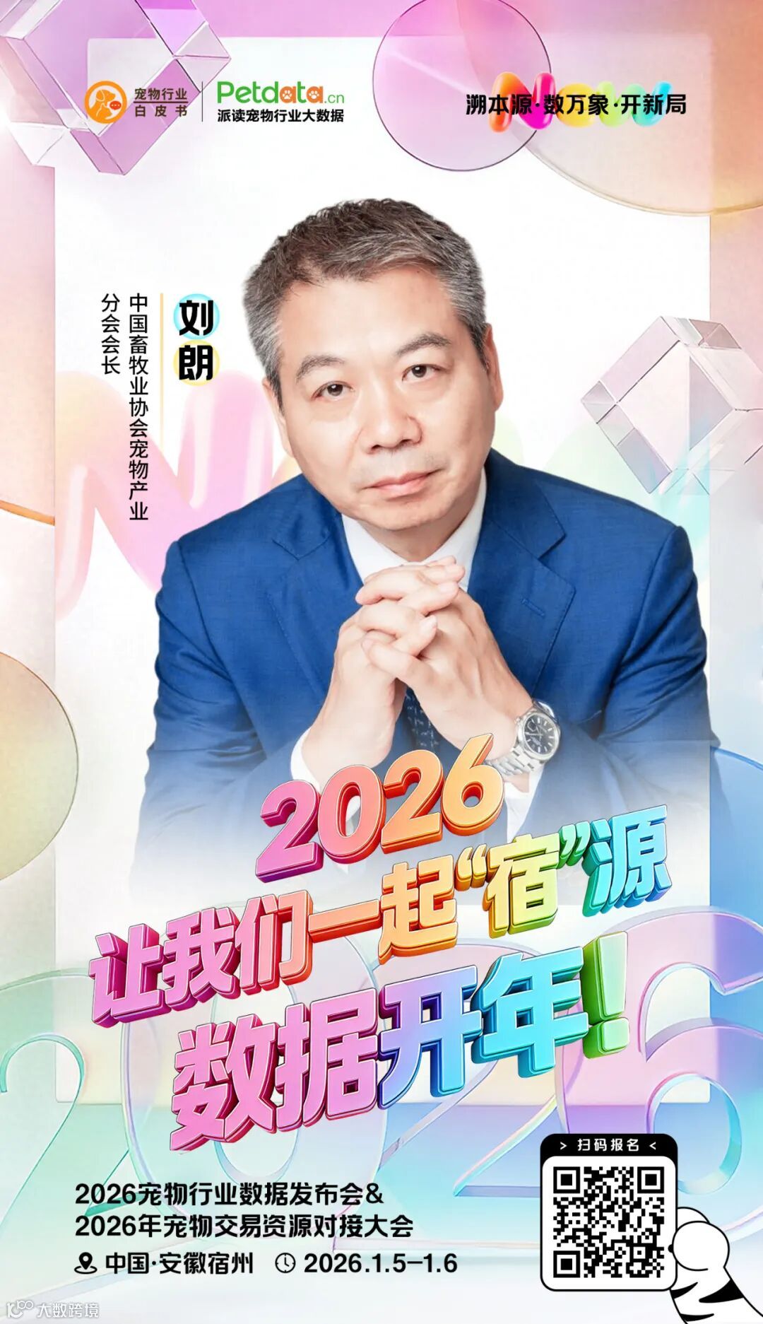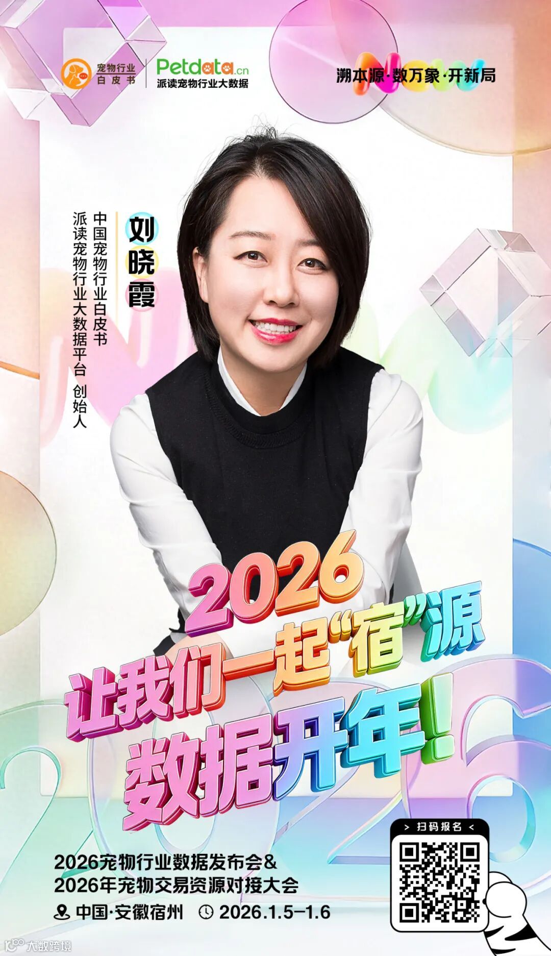 由宠物行业白皮书,派读宠物行业大数据平台主办、福建贝创投资发展集团有限公司,安徽恩宠有加宠物用品有限公司联合主办、安徽省宠物行业协会,华南农业大学动物科学学院,赣南创新与转化医学研究院,宿州市宠物经济商会协办、北京派读科技有限公司,宿州市广播电视台承办的2026年中国宠物行业数据发布会将于2026年1月5日-6日在宿州丰大国际酒店隆重举行。今天,白皮书团队将为大家介绍本次大会的重量级参会嘉宾以及他们带来的分享内容。