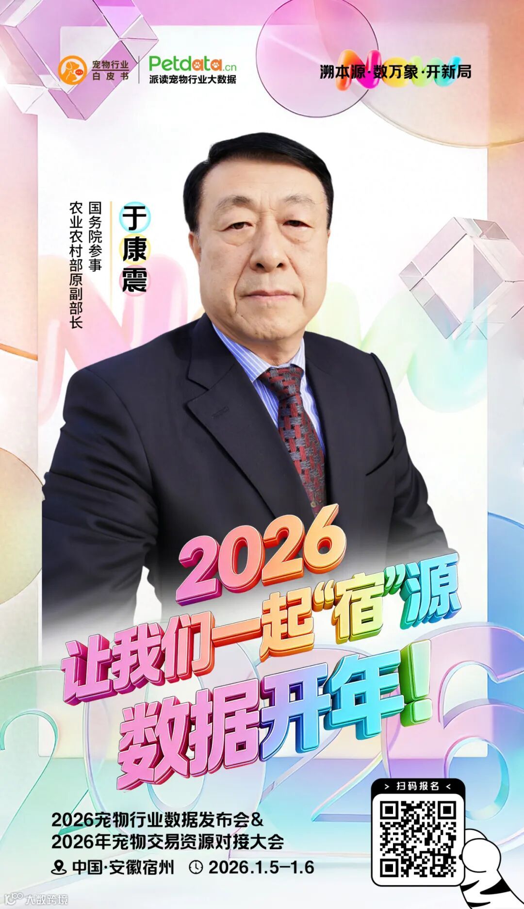 1月5日上午,国务院参事、农业农村部原副部长于康震将出席2026年中国宠物行业数据发布会,并为大家带来《行业趋势:面向“十五五”的中国宠物产业》专题分享。