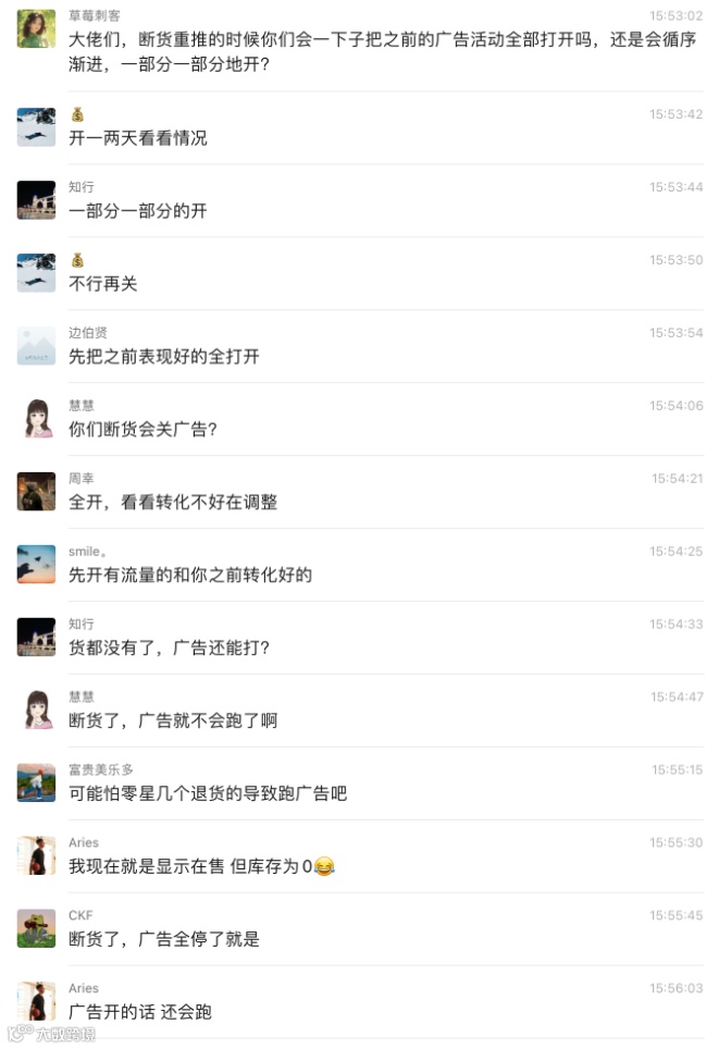 M:大佬们,断货重推的时候你们会一下子把之前的广告活动全部打开吗?还是会循序渐进一部分一部分地开?