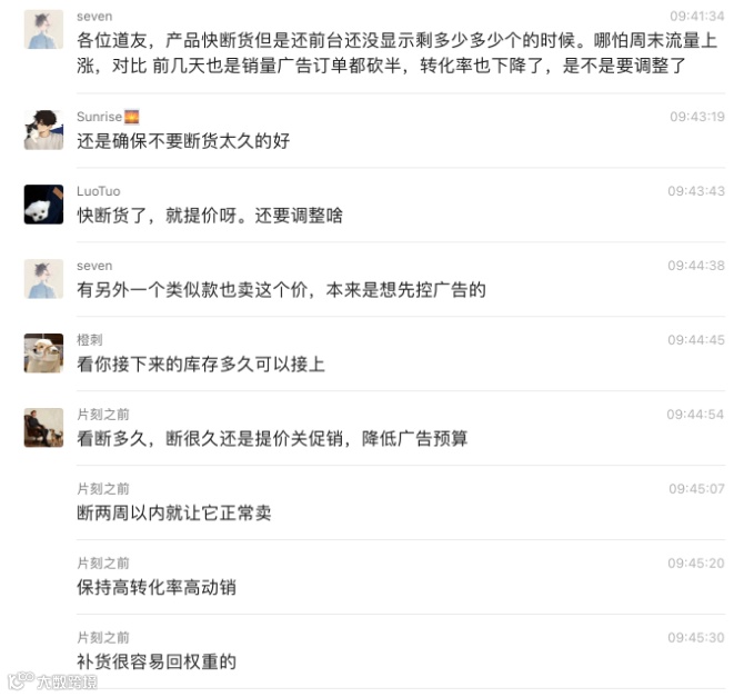 E:各位朋友,产品快断货了但是前台还没显示剩多少个,这个时候虽然周末流量上涨了,但是对比前几天也是销量广告订单都砍半,转化率也下降了,是不是要调整了?有另外一个类似款也卖这个价,本来是想先控广告的。