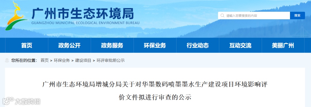 近日,广州市生态环境局增城分局,对华墨数码喷墨墨水生产建设项目环评文件进行拟审查公示。公示时间为2025年12月25日至2025年12月31日。