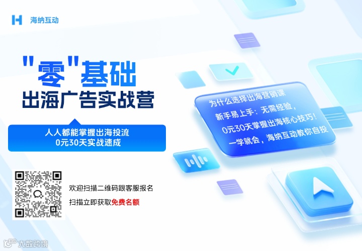 如果想要学习 AI+ 海外广告自投,快速测试新市场、新产品,欢迎了解海纳互动推出的《0基础出海广告实战营》免费自投课程!