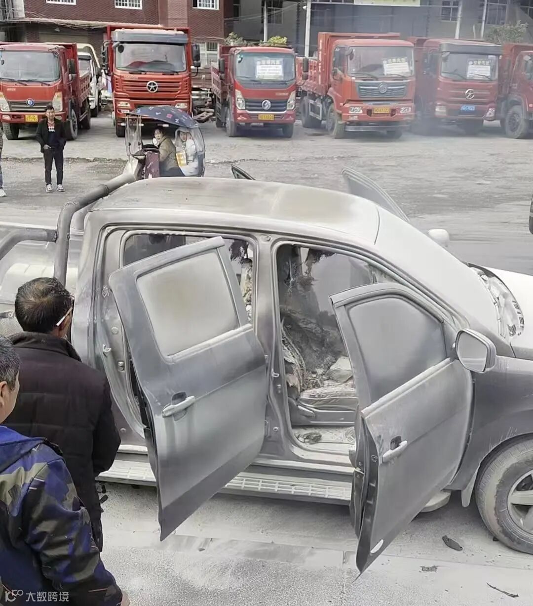 12月26日12时10分,湖北省建始县物流园外侧公路上,一辆装载电缆的皮卡车尾部突发起火,浓烟滚滚,车辆疾驰至园区路边紧急停靠。车主向大哥称,车内四人当时束手无策。