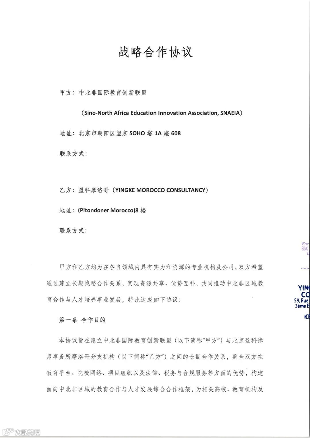近日,中北非国际教育创新联盟(SNAEIA)与盈科摩洛哥正式签署战略合作协议。双方将整合教育平台、院校网络、项目组织及法律、税务与合规服务等资源,共建面向中北非区域的教育合作与人才发展综合支持体系,为高校、教育机构及企业提供统筹服务,同步提升在国际教育与法务服务领域的品牌影响力与综合竞争力。