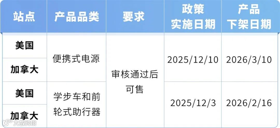 近日,亚马逊美国站和加拿大站正式对“便携式电源”“学步车和前轮式助行器”两大品类实施全新合规政策,明确产品检测标准、详情页信息展示要求及文件提交规范。未按时完成合规的商品将面临下架风险。
