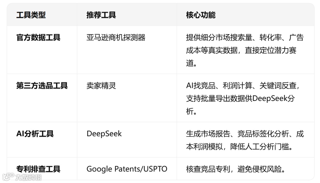 1. 工具:亚马逊官方「商机探测器」(Market Insights)+ DeepSeek(AI市场分析)