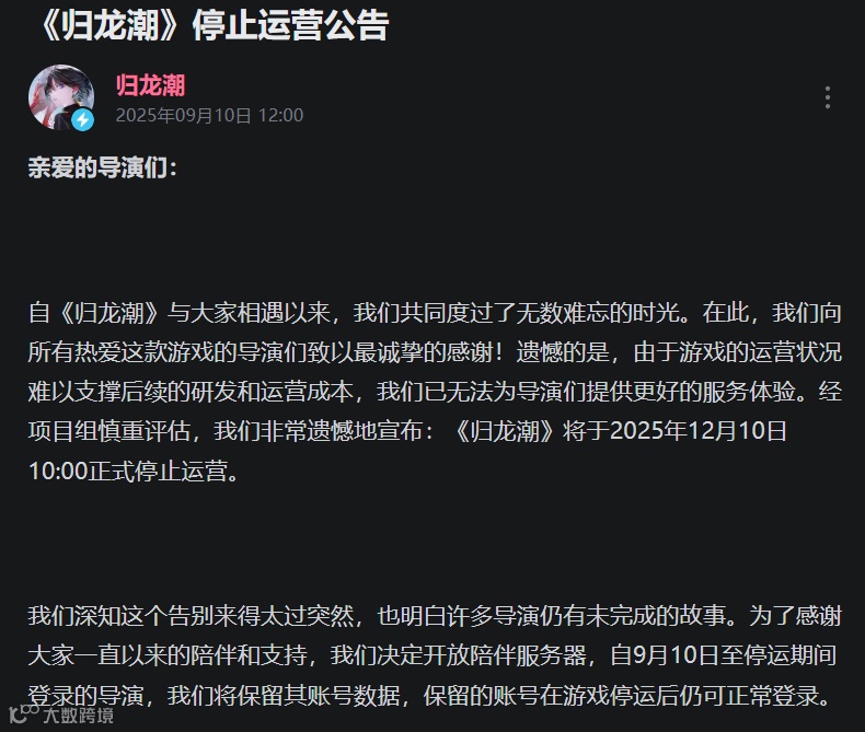 游戏关服作为行业不可避的一环,未来或许会有更多关于“虚拟游戏数据等于玩家财产”的议题以及案例出现,怎么妥善地对待这方面的问题,会是厂商将要关注的重点。
