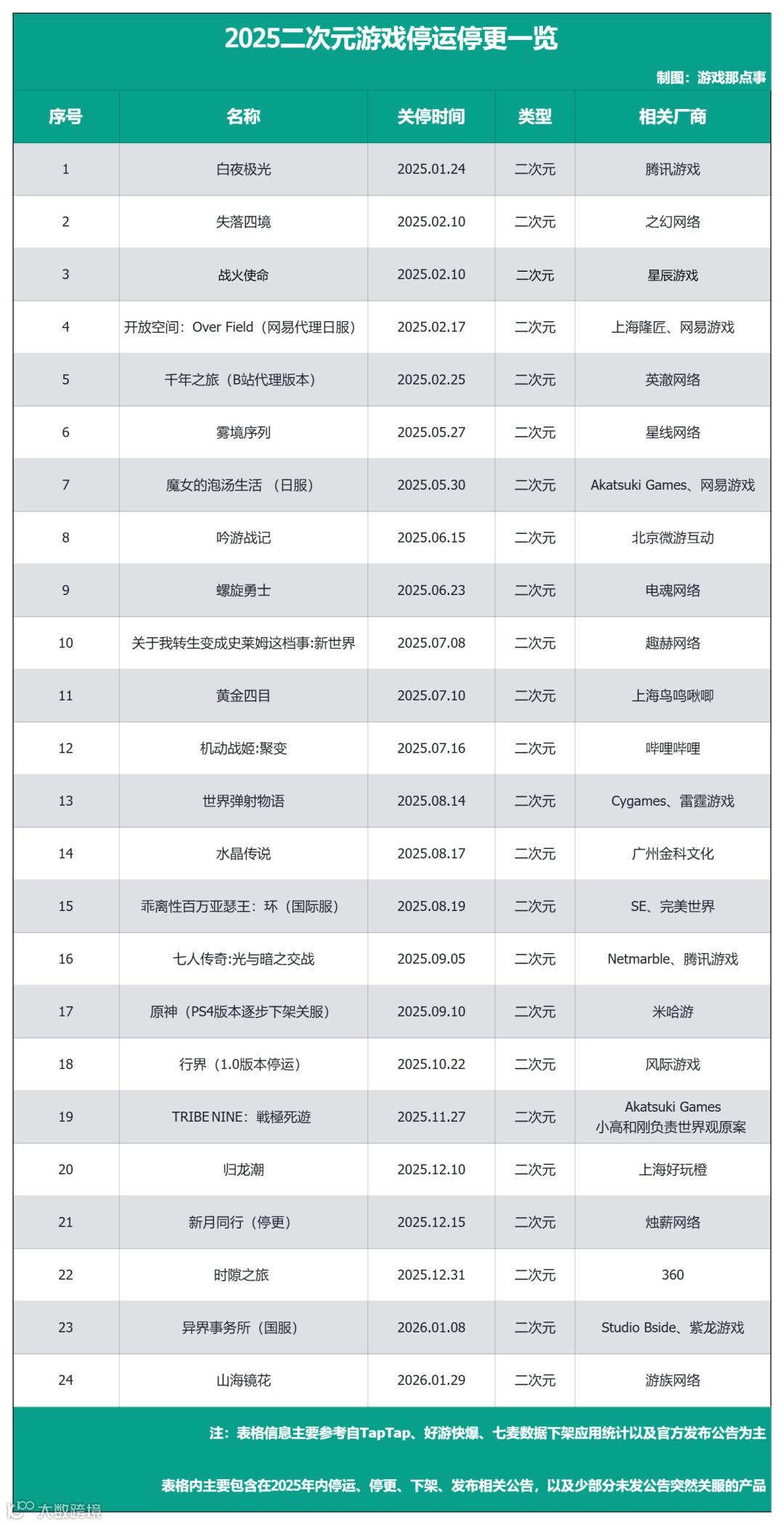回顾2025年关停的上百款产品,还是得感叹游戏行业的迭代速度之快,竞争之残酷,而这些仅仅只是关停的一部分,真实数量肯定远不止于此。