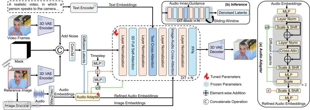 当前用于音频驱动的虚拟形象视频生成的扩散模型难以合成具有自然音频同步和身份一致性的长视频。StableAvatar是首个无需后处理即可合成无限长高质量视频的端到端视频扩散变换器。StableAvatar 基于参考图像和音频,集成了定制的训练和推理模块,从而实现无限长视频的生成。