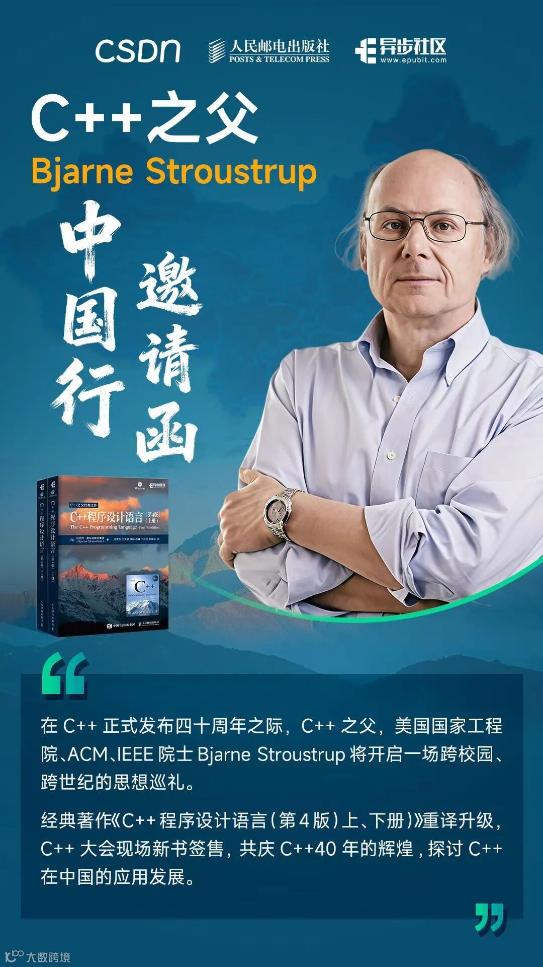 号外!C++ 之父Bjarne Stroustrup 的中国线下见面会火热报名中!点击到文章尾部即可查看全部行程!在12月12日和12月14日现场将举行《C++程序设计语言(第4版)上、下册》作者签售会同时还可以合影留念哦!