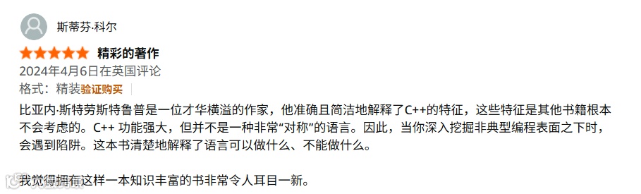 而这本由C++之父比亚内·斯特劳斯特鲁普(Bjarne Stroustrup)亲笔撰写的经典之作,也历经多次重大更新,始终与语言演进同频共振,创下近 20 种语言译本、千万册销量、年销售额超 5000 万美元的传奇战绩,在亚马逊平台的 “最佳 C & C++ 编程书籍” 榜单中长期稳居前列,名气大到“提到 C++ 经典,必言此书“。