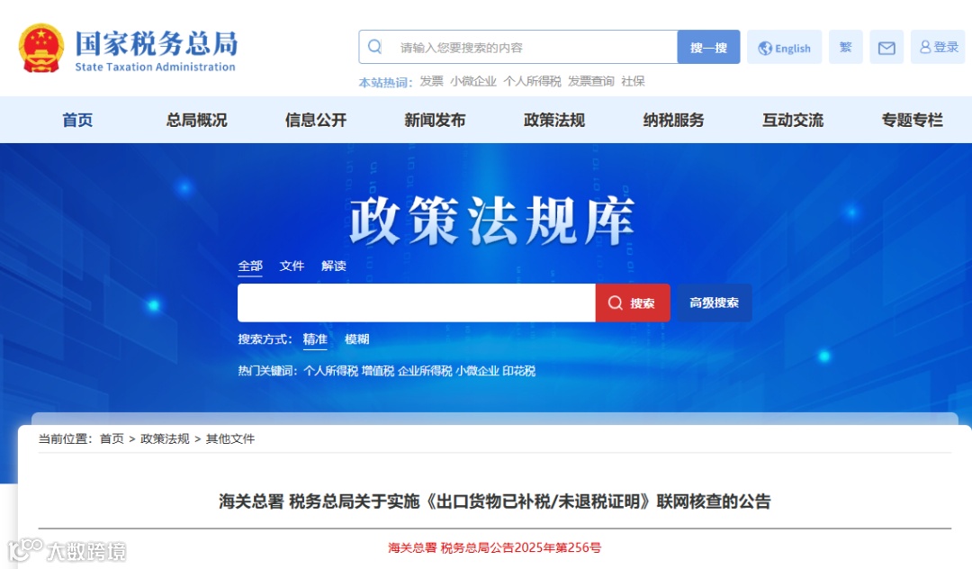 为进一步优化口岸营商环境,促进跨境贸易便利,海关总署、税务总局决定对《出口货物已补税/未退税证明》(以下简称《证明》)实施电子数据联网核查。现将有关事项公告如下: