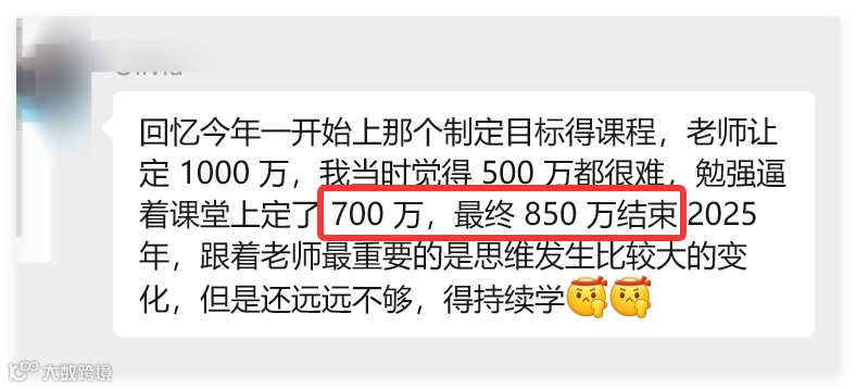 第一,是我选对了人群加入私教班,第一批都是意愿非常强烈,而且非常认可我的,90%以上我都一对一深度沟通过,大家彼此了解的情况下