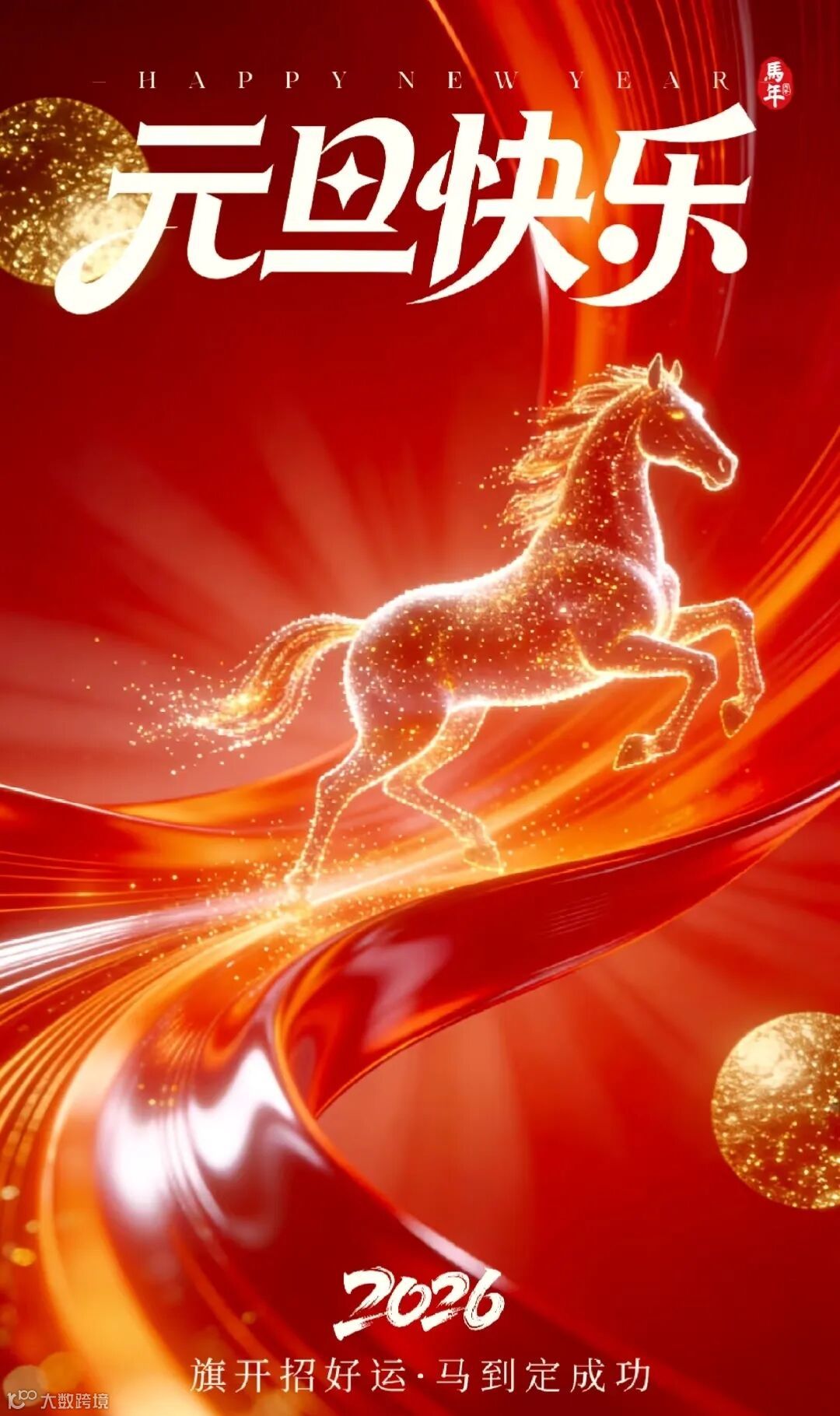 祝愿全体同仁及家人元旦快乐、和顺致祥;愿2026年郫都外贸山海同程、共赢未来。