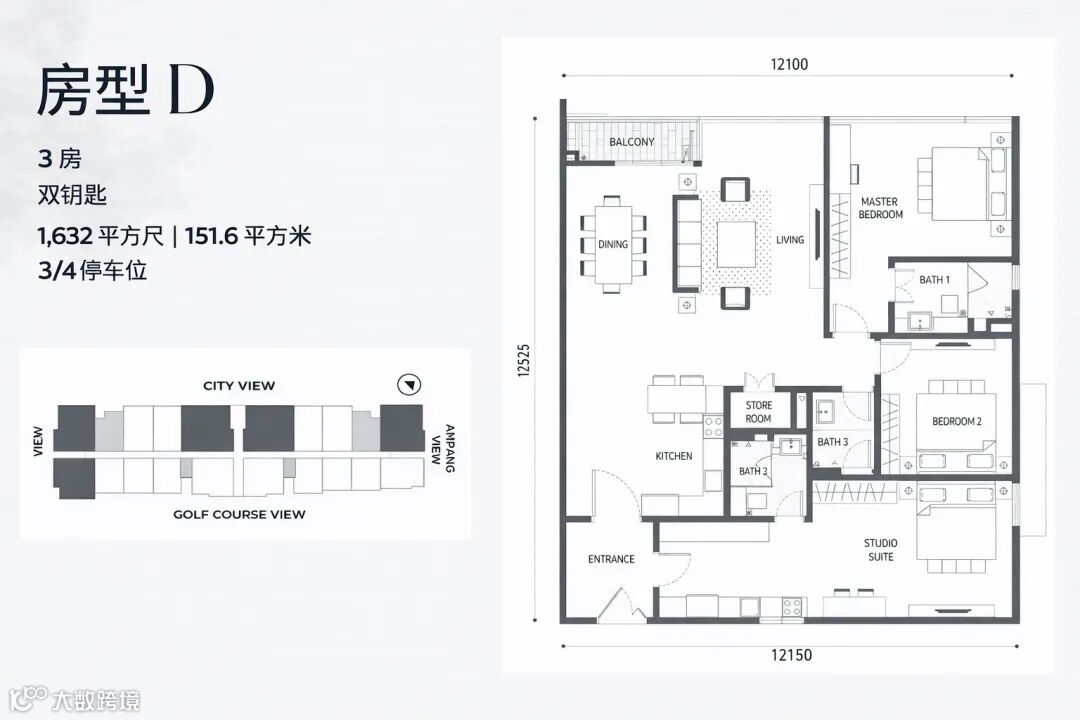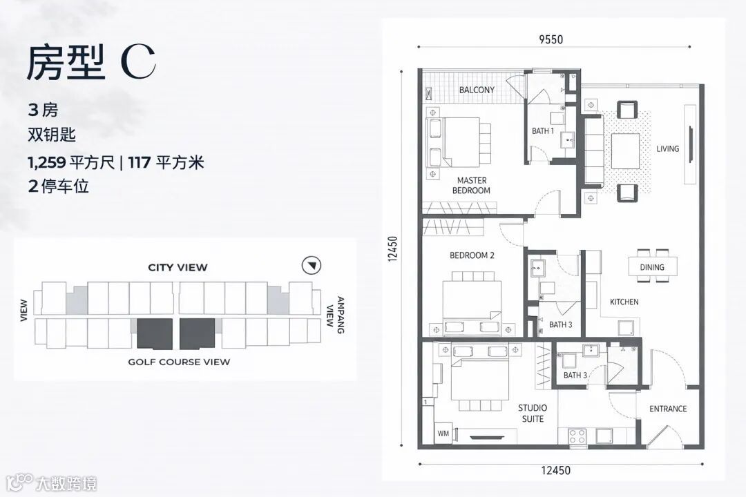 双钥匙户型设计在吉隆坡极为稀缺:一套房产含两个独立生活单元,可自住+出租,或整套分租给国际学校家庭、外籍人士,显著提升租金回报率与资产流动性 [3] 。当前剩余单位以2~3房双钥匙为主,实用面积超90㎡,配2个车位 [3] 。