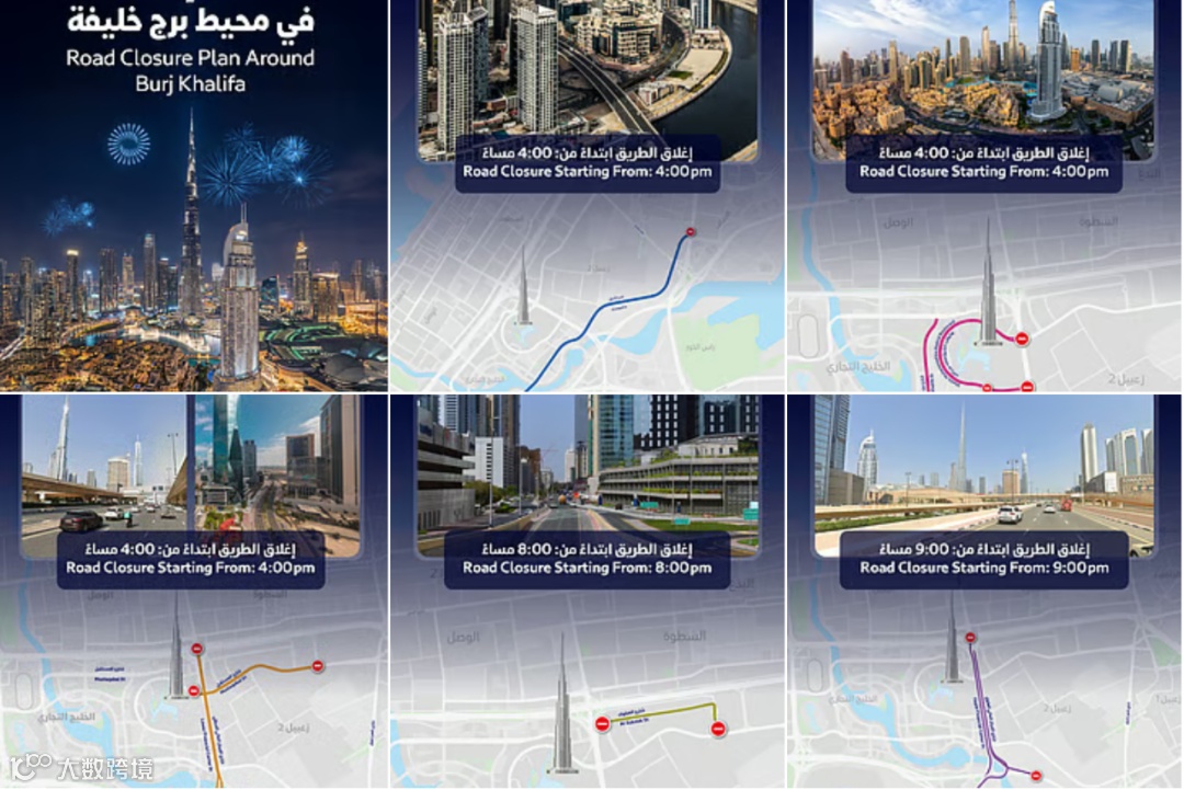 迪拜将在哈利法塔举行世界级跨年盛典,迎接2026年到来。为保障270万跨城出行民众的通行效率,迪拜道路与交通局(RTA)将分阶段实施交通管制。