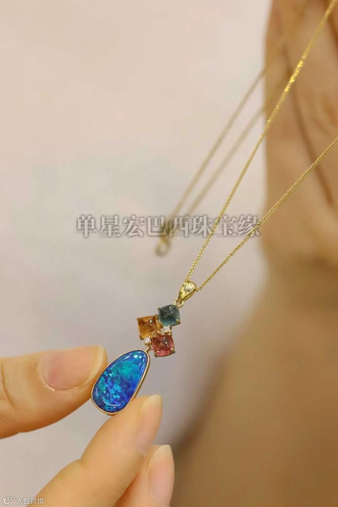 天然巴西碧玺与澳洲欧泊巧妙组合,18K金精工镶嵌;随光线与角度变化,呈现五彩斑斓光泽 [4] 。