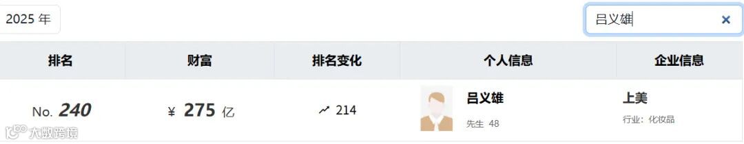 争议发生前,吕义雄正以“潮汕黑马”之姿领跑中国美妆新富榜:2025年胡润百富榜显示,其身家达275亿元,同比激增160亿元。
