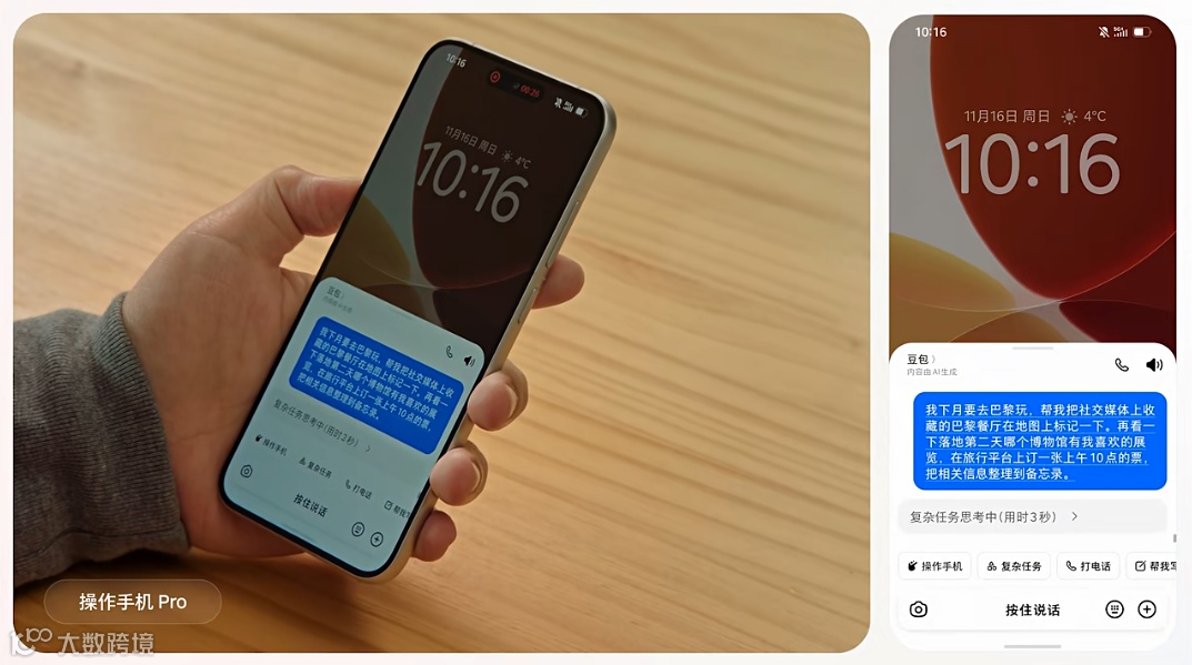 过去三年,AI主要以“内容智能”形态存在——通过大语言模型生成文字、图像等信息。但一个现实问题始终存在:AI能写诗作画、规划行程、给出健康建议,却无法替用户真正执行任务。我们仍需手动打开多个APP比价、预订、下单,效率未获本质提升。