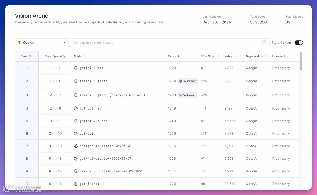 Vision Arena测试多模态图像理解能力,截至12月16日累计投票57万。