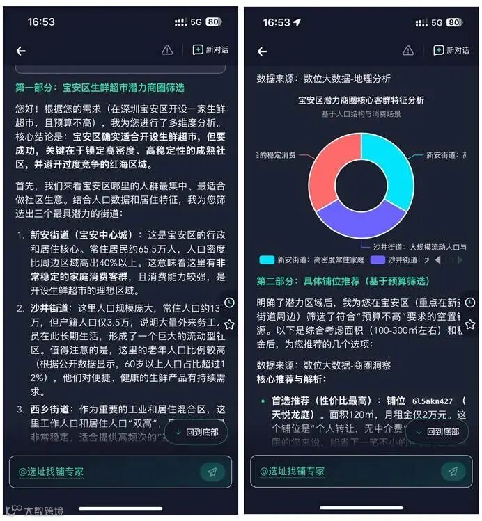 实地验证后证实分析准确。此外,工具还整合周边配套、竞对情况、适配业态及品类侧重建议,显著提升选址效率。
