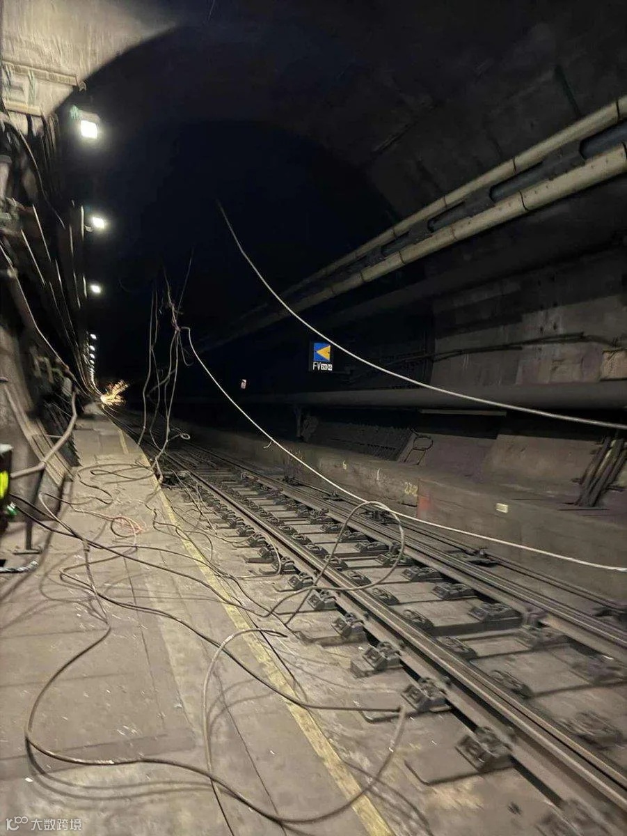 英吉利海峡隧道内因电缆缠绕起火引发严重故障,导致自1月1日(周二)起几乎所有往返英法的欧洲之星列车停运。现场照片显示轨道内外电缆杂乱散落,远处不时冒出火花。