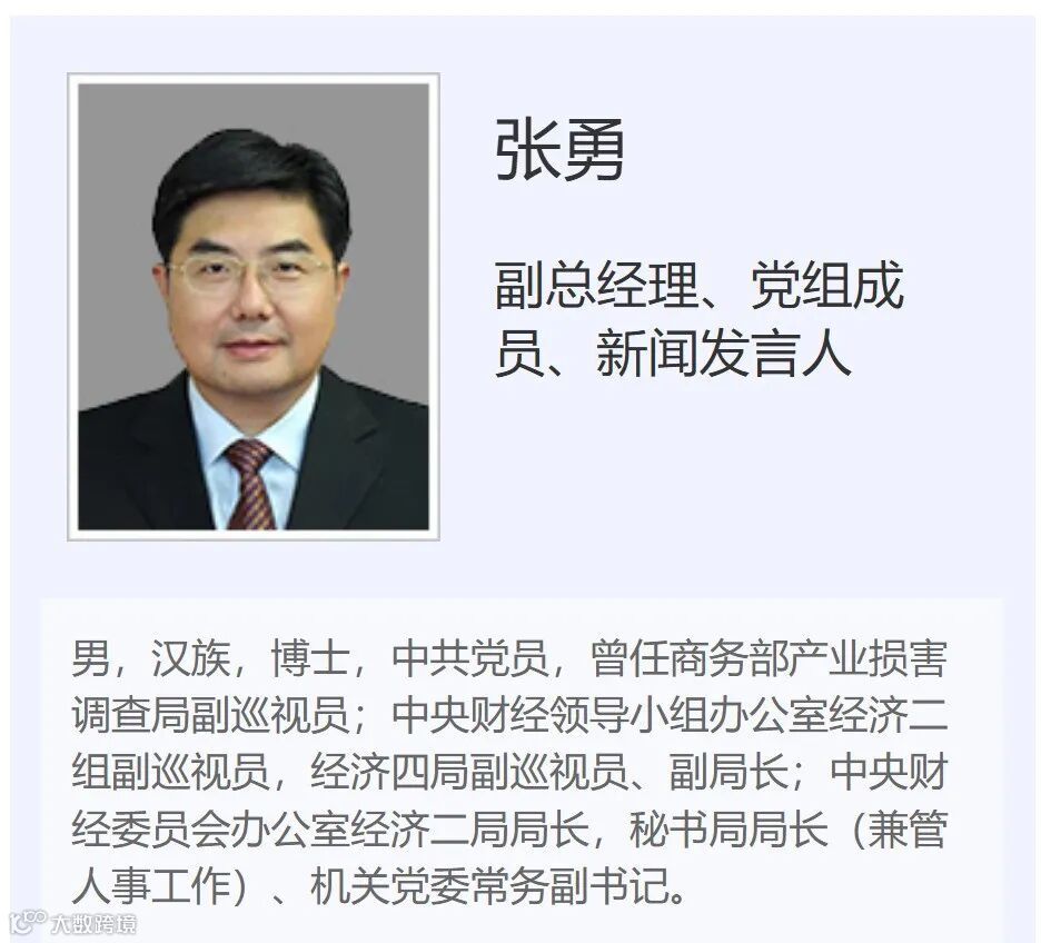 来自中远海运集团官方网站“公司高管”一栏的公开资料显示:张勇升任中联办副主任之前,在中国远洋海运集团的职位为:副总经理、党组成员、新闻发言人。