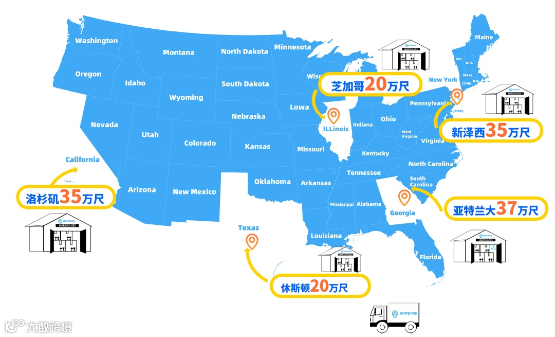 2025年,邮差小马持续推进仓网能力建设,海外仓总面积由去年的80万+平方英尺扩展至100万+平方英尺,仓网覆盖能力进一步提升。