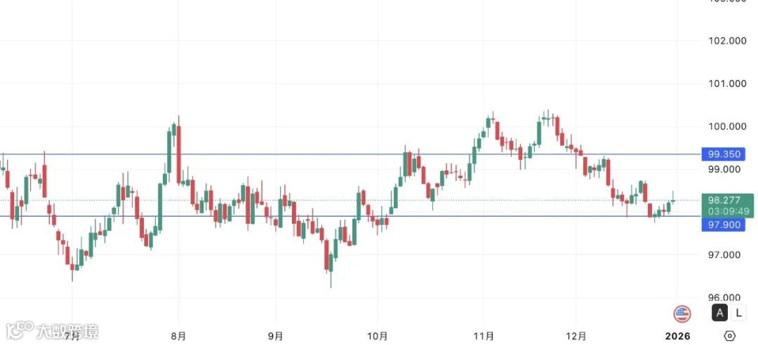 综合而言,美元指数已连续5个交易日反弹,反映出市场对美联储未来政策路径的重新定价。尽管最新会议仅实施25个基点的降息,但投资者普遍预计未来降息节奏将显著快于决策者所暗示的节奏。从美联储公布的最新利率路径来看,决策层预计到2026 年底的联邦基金利率将降至 3.4%,意味着未来一年仅有一次降息。但据 CME FedWatch 数据,市场认为未来一年至少两次降息的概率高达50%,明显偏向更宽松的方向。除了政策路径的分歧,市场近期关注到关于美联储独立性的讨论升温,而总统层面对更大幅度降息的呼声也令美元多头更趋谨慎。此外,本周宏观环境整体偏向风险偏好,进一步削弱美元避险价值。因此,当前美元的下跌并非单一因素所致,而是利率预期、风险情绪与政策沟通共同作用的结果。美元指数在触及97.90支撑后反弹所呈现的,是宏观叙事进入再评估阶段后的典型形态:趋势在、分歧也在。通胀数据仍是主导变量,但数据质量问题让市场更难形成一致的中期定价;英欧政策决议提供利差线索,却未必足以单独驱动美元走出明确单边。交易员仍会持续关注两类信息是否能提高信噪比:一是后续更完整的通胀与消费端细项,验证年末价格变化究竟更多来自能源与季节性因素,还是更广泛的核心项抬升;二是美联储官员对“数据缺口如何处理”的表态,尤其是对通胀持续性、就业松动程度以及政策反应函数的阐释。如果数据连续性恢复且核心通胀保持韧性,市场对“利率维持更久”的定价可能更稳,美元指数的下行压力或许会减轻;若后续证据显示价格压力继续缓和且增长动能放缓更清晰,美元指数则可能继续处在偏弱框架里运行。无论哪种情景,今日这类“信息不完备”的关键数据更像是一次压力测试:测试市场对美元叙事的依赖程度,也测试风险资产与主要货币对利率路径变化的耐受度。需要注意的是,如若美国数据显示韧性仍在,那市场对美联储额外宽松预期就需要被“撤回”,收益率曲线将发生“鹰派再定价”。在这一过程中,美元指数将成为受益方。全球风险情绪的反复以及市场对美联储过度宽松的预期,如果交易员开始相信“降息底部已现”,那么此前积累的悲观交易将面临回补压力,从而也将驱动美元指数再度回升。因此,当前美元指数是否可以依赖后续“数据改善”打破这一弱势窗口期将成为短期价格走势转折的关键变量。技术层面上,如若美元指数可在短期内可收复99.35美元区域失地,并位于该区域上方再度巩固底仓,则将有望强化多头控盘节奏,为其价格反弹测试100.00美元高点区域提供新的看涨动力。而如若支撑端口97.90美元一线区域彻底失守,则空头优势主导局面将得到深化,或推动美元指数进一步回落测试97.20一线区域,并易触发新一轮“止损-再定价-弱势延续”的窗口开启。而当前美元指数对于97.90这一关键防线得失已构成市场多空双方的关键拉锯焦点。
