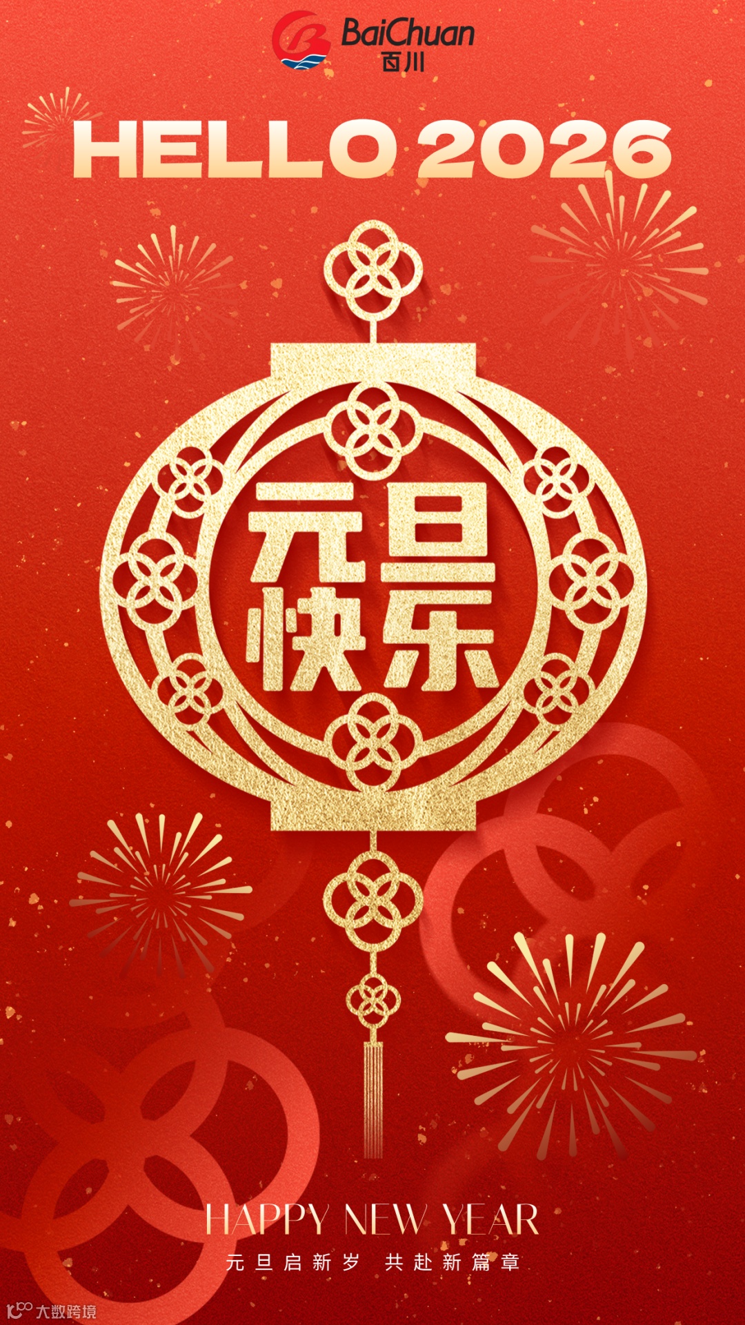 百川跨境供应链有限公司以赤诚之心恭祝各界伙伴新岁乘风破浪,事业马到成功!