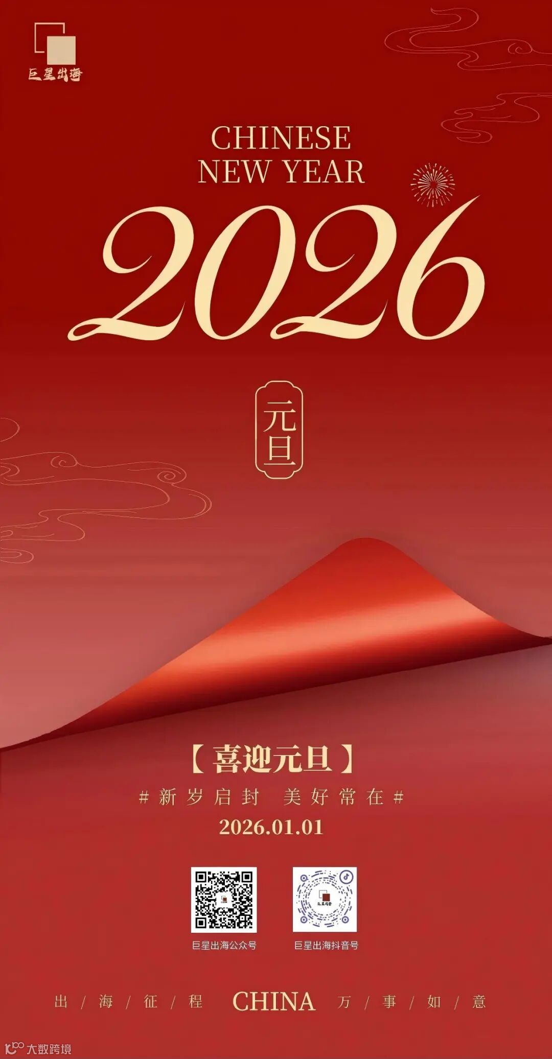 当新年的第一缕阳光掠过海平面,我们站在2026年的开端,回首共同航行的轨迹,展望前方辽阔的蓝海。在此,巨星出海向所有并肩前行的企业家、每一位勇敢的探路者,致以最诚挚的感谢与新年祝福!