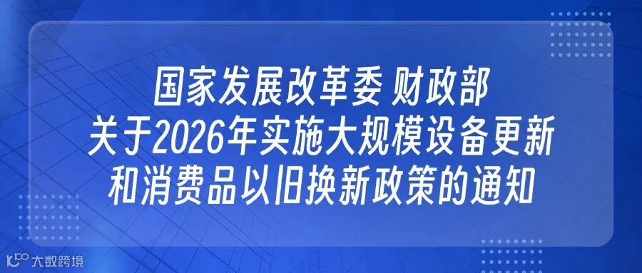 2026年国家大规模设备更新和消费品以旧换新政策要点