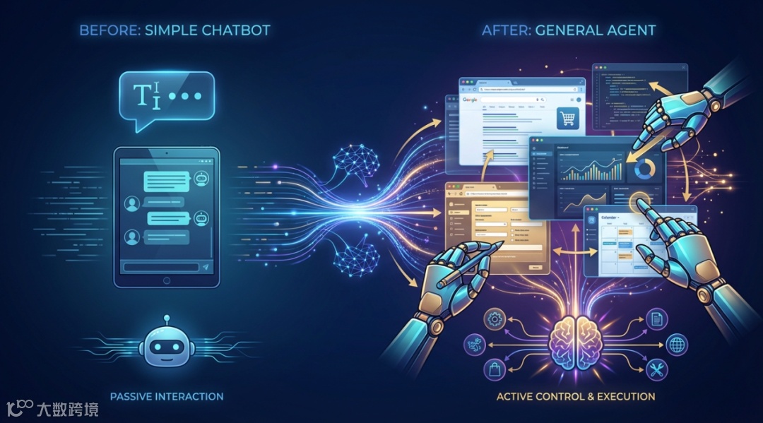 Manus 的核心价值在于构建了一套复杂的环境交互系统:不仅能生成文本,更能像人一样操作浏览器,完成订票、填表、服务器部署等长链路任务。