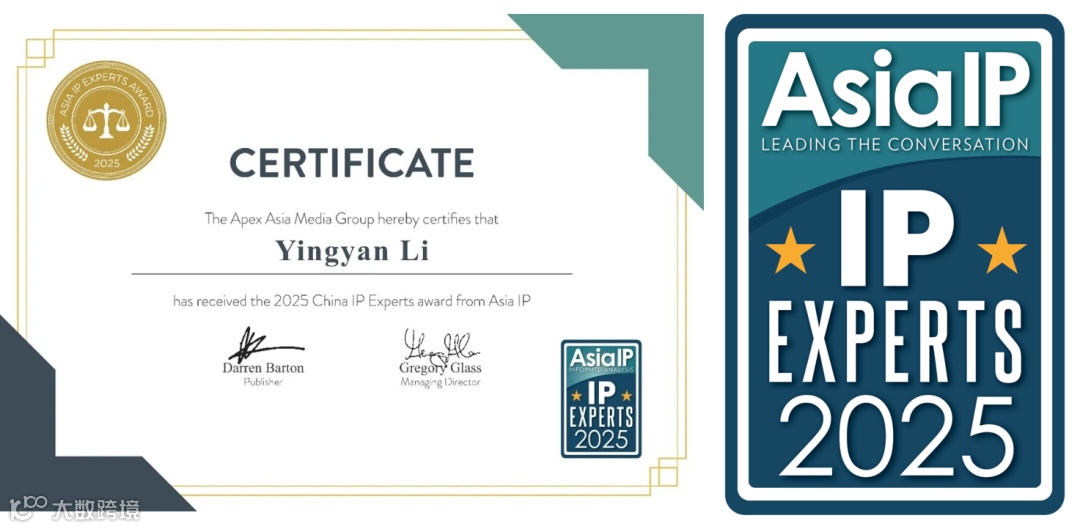 李英艳女士入选《亚洲知识产权》(Asia IP)2025年度中国百强知识产权专家,并荣获“2025中国知识产权专家奖”。