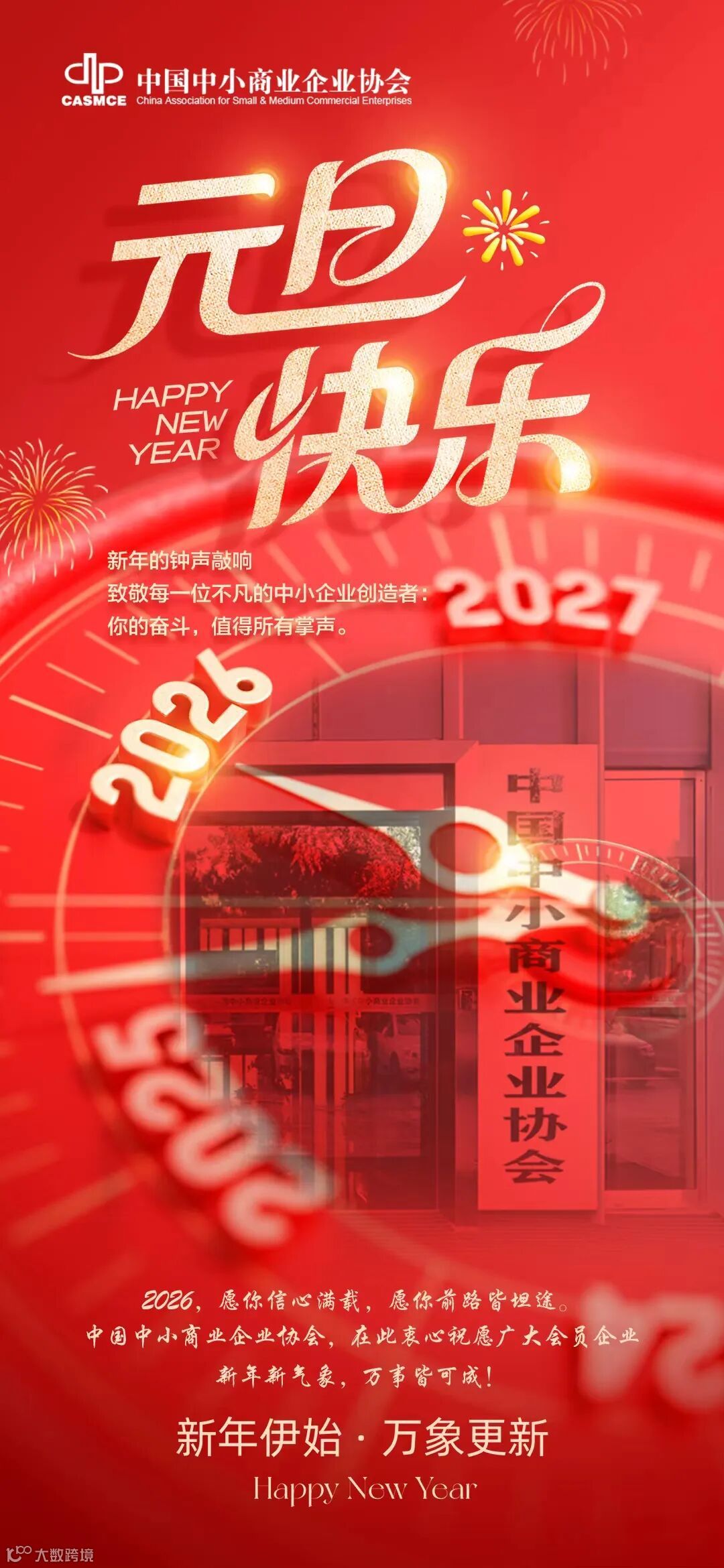 中国中小商业企业协会向全体会员企业,以及长期关心支持我国中小企业发展与协会工作的各界朋友,致以诚挚问候和新年祝福。