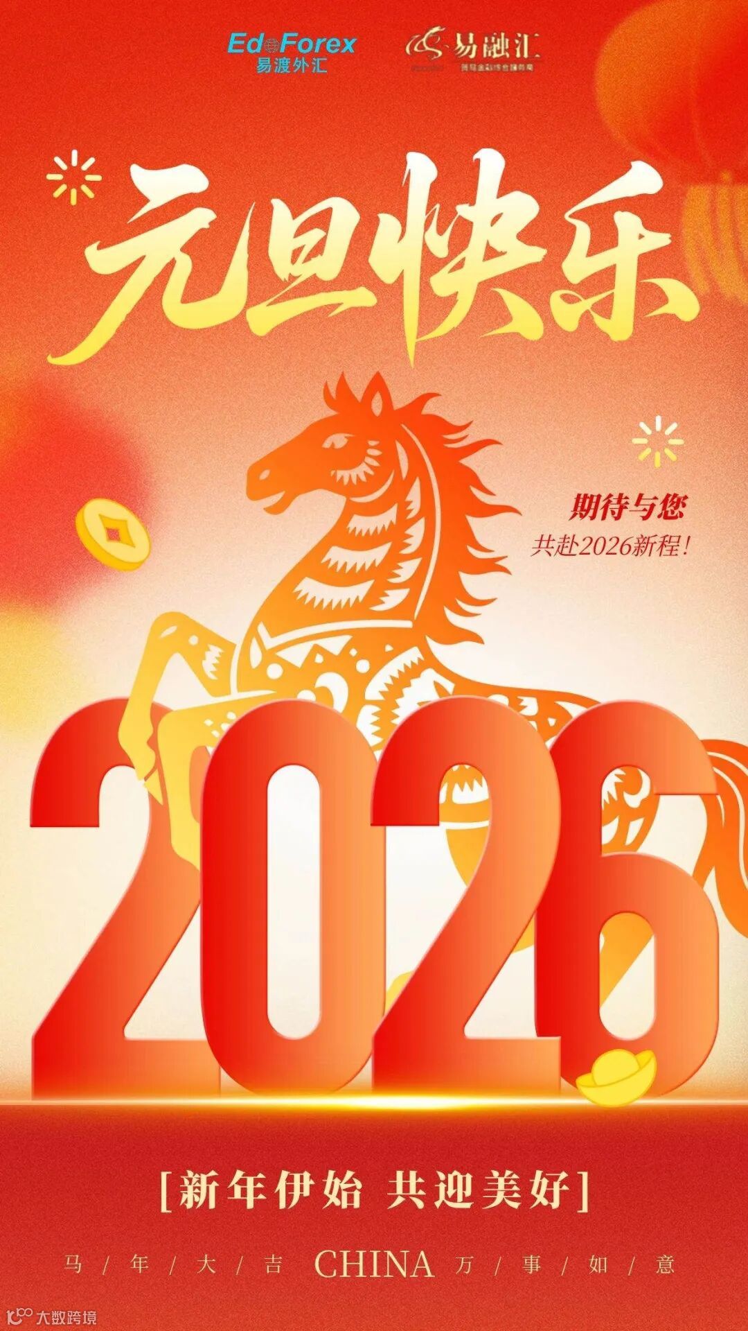 值此新年之际,祝愿各位伙伴:跨境事业乘风破浪,汇市布局皆如所愿,财源广进、万事顺遂!期待2026年继续携手,共赴跨境金融新征程。