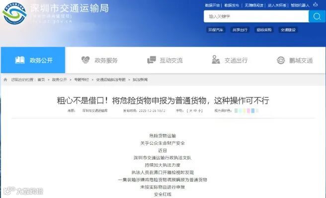 深圳官方通报:货代瞒报危险品被立案,粗心绝非免责借口!