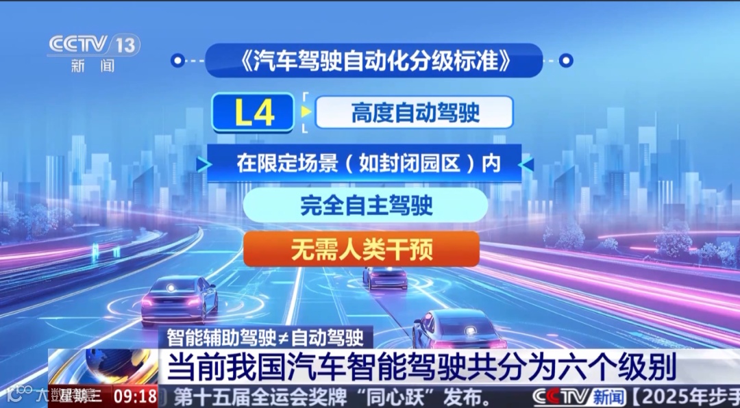 根据国家标准,汽车驾驶自动化等级分为0—5级: