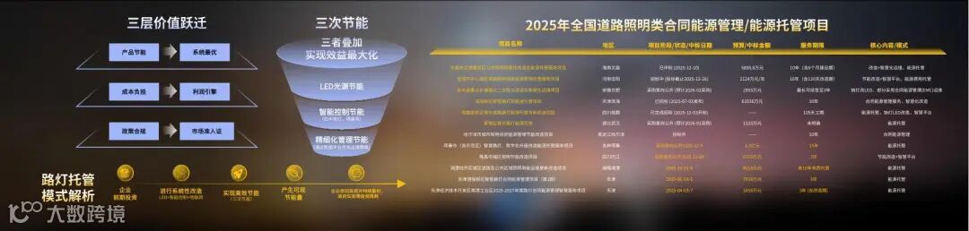 以路灯能源托管项目为例,通过LED光源节能、智能控制节能、精细化管理节能三次叠加,可实现效益最大化。但此类项目周期长(3–15年),对中小企业长期经营能力构成挑战。