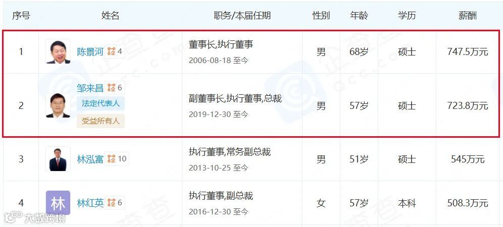 截至2024年财报,邹来昌持有紫金矿业272.3万股,远低于陈景河的8510万股;但其2024年税前年薪达723.8万元,与陈景河相当。