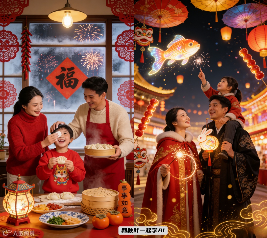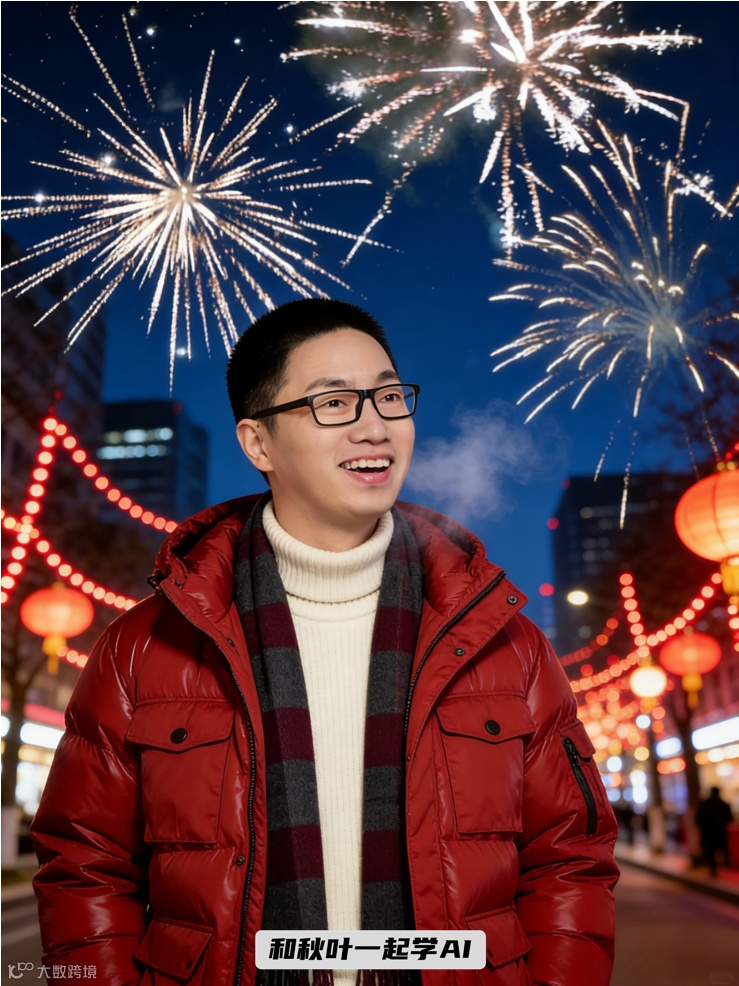一句指令即可完成生图+拼图,适配烟花、雪地、阳台等多种新年氛围场景,宅家高效产出朋友圈高质量素材。