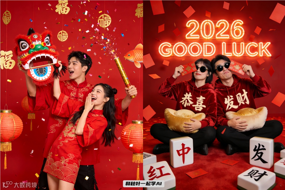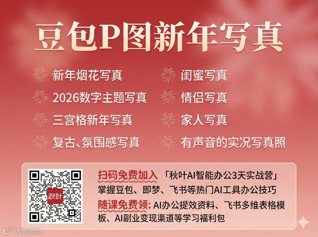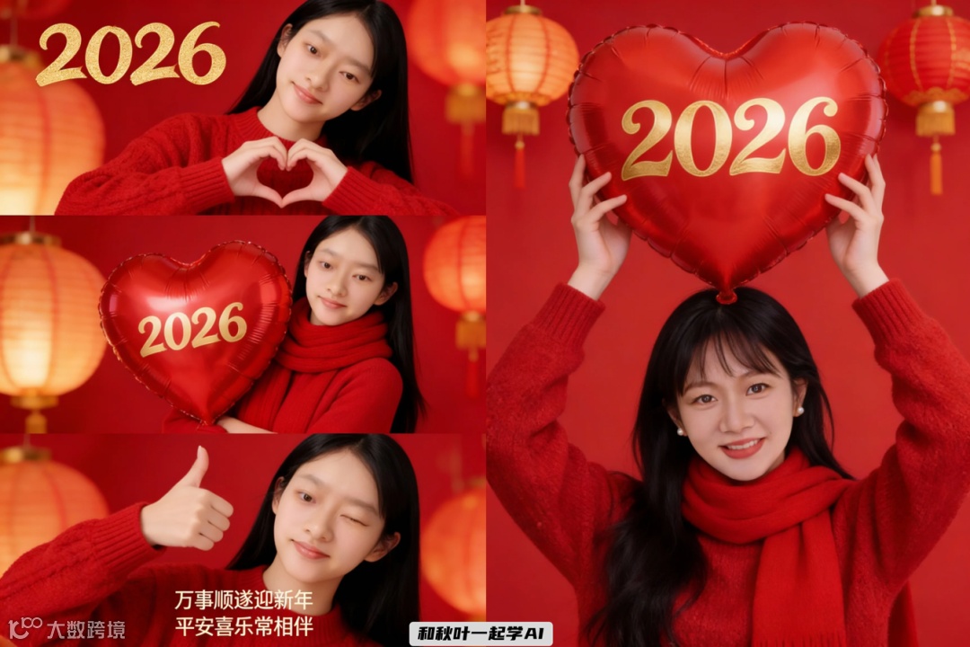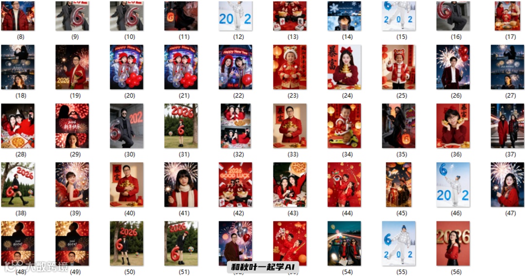 文中所有新年写真提示词均已整理为《2026 AI 新年写真指令》资料包,涵盖单人/多人、静态/动态、节日/氛围等多维度关键词组合,即刻复用,高效出图。