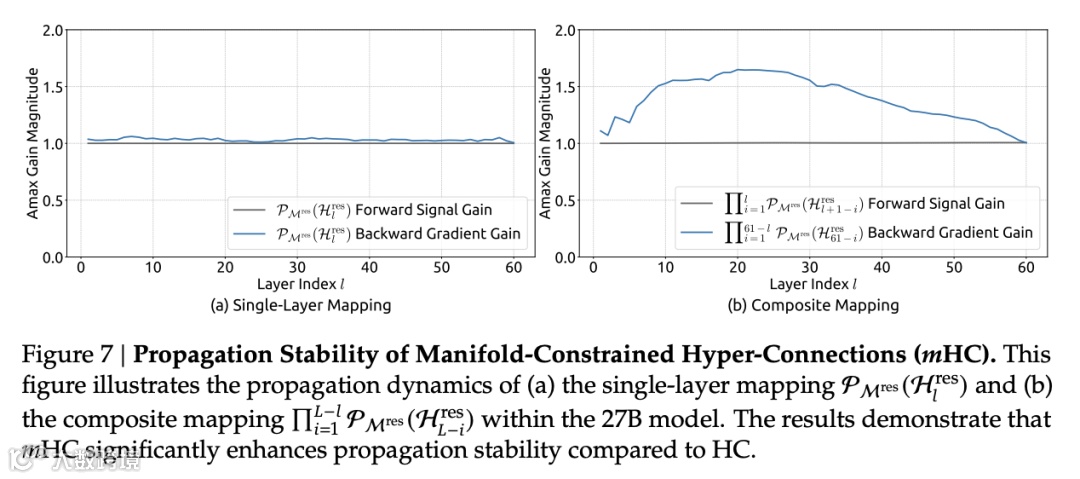 原文图7:mHC传播稳定性(a)单层映射,(b)复合映射